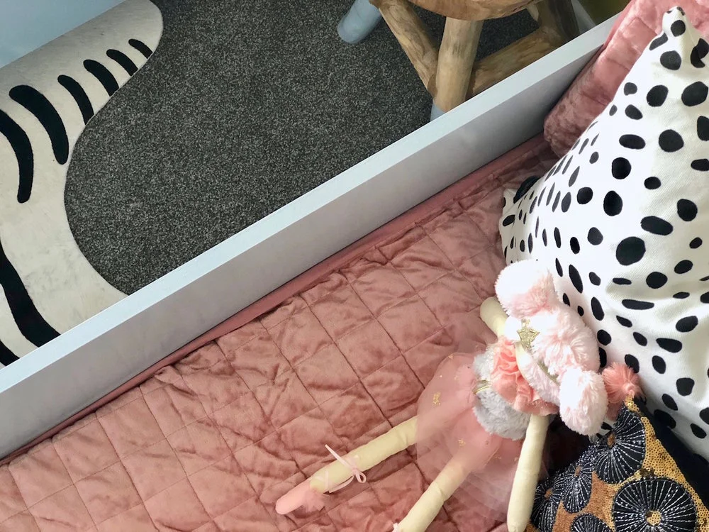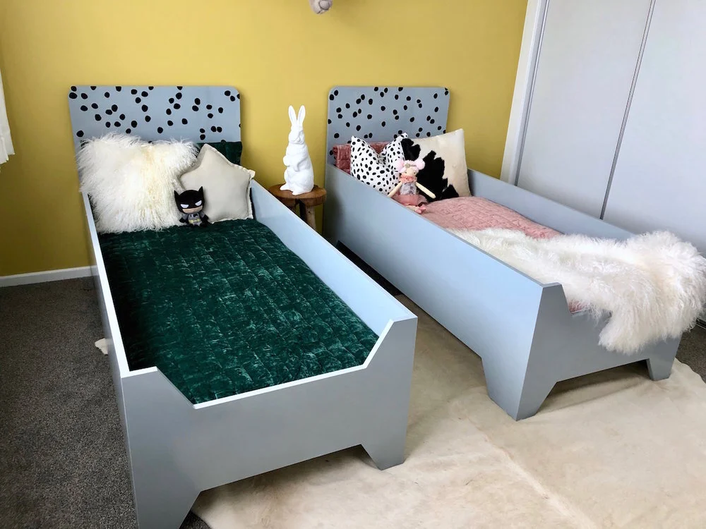 Because it’s a shared room I wanted the beds to be identical, but provide Mika with a design that helped her transition from a cot. While a single bed is the most common option, I love toddler beds.
