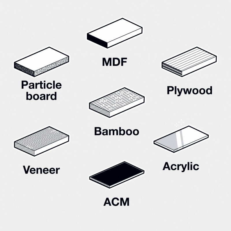 Access a comprehensive selection of cabinet options, high-quality boards, and essential hardware.
